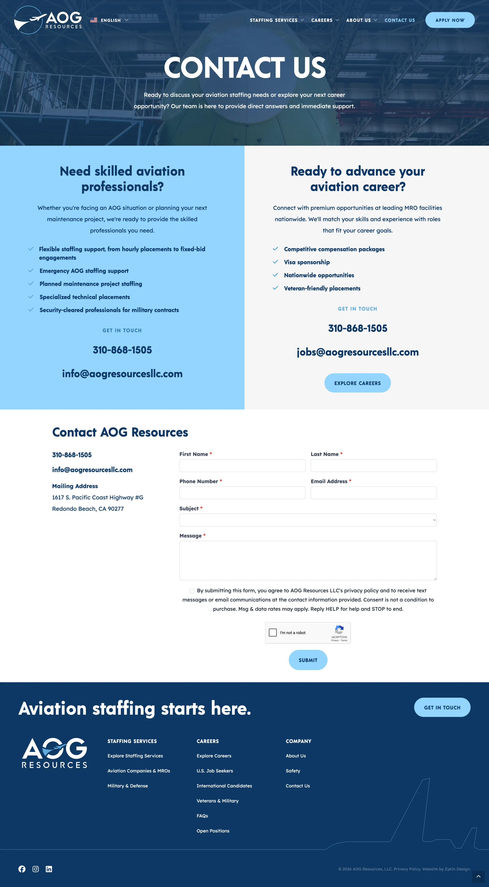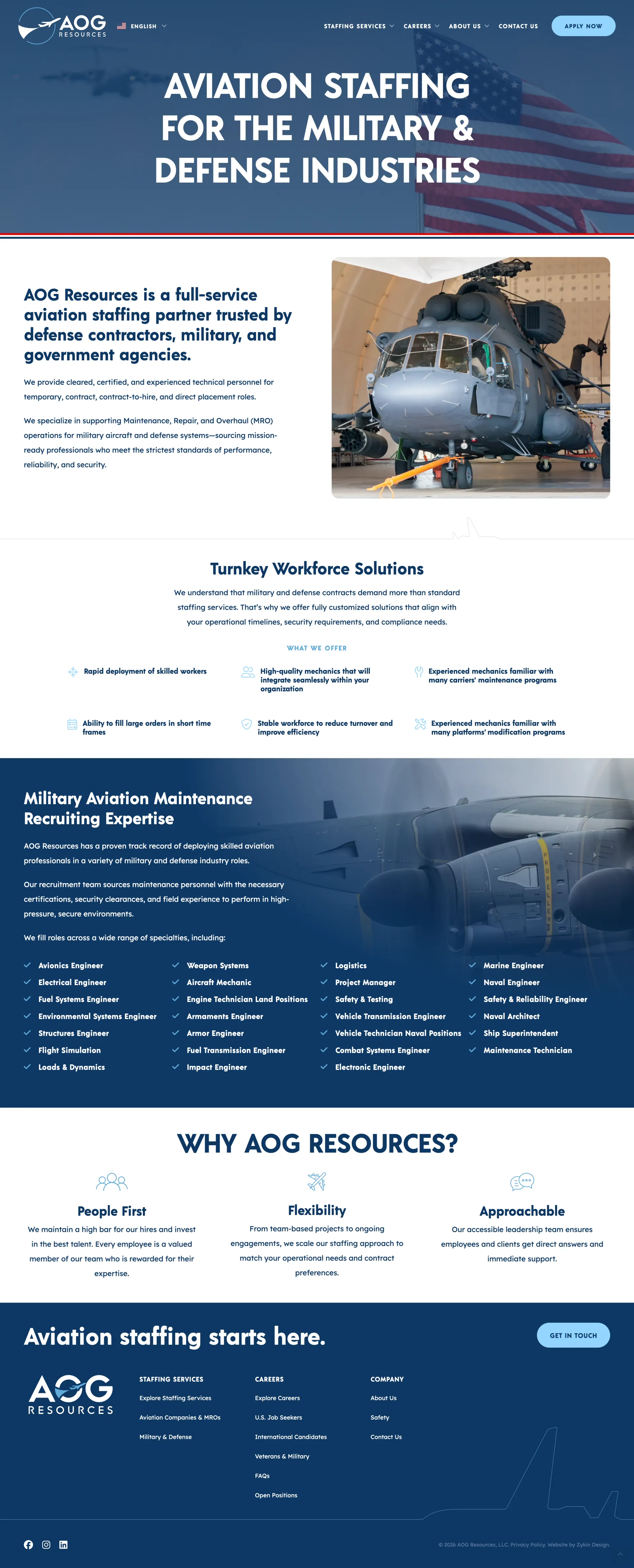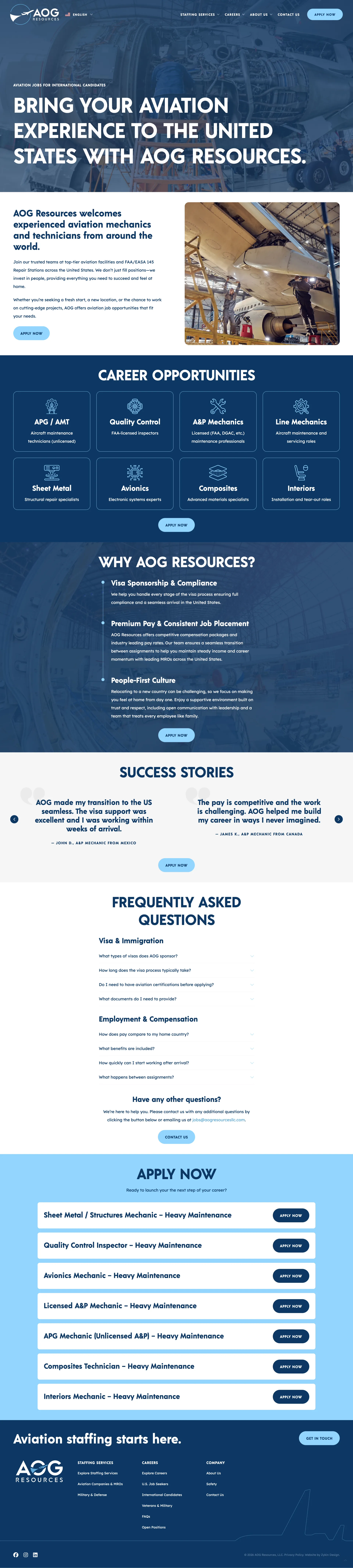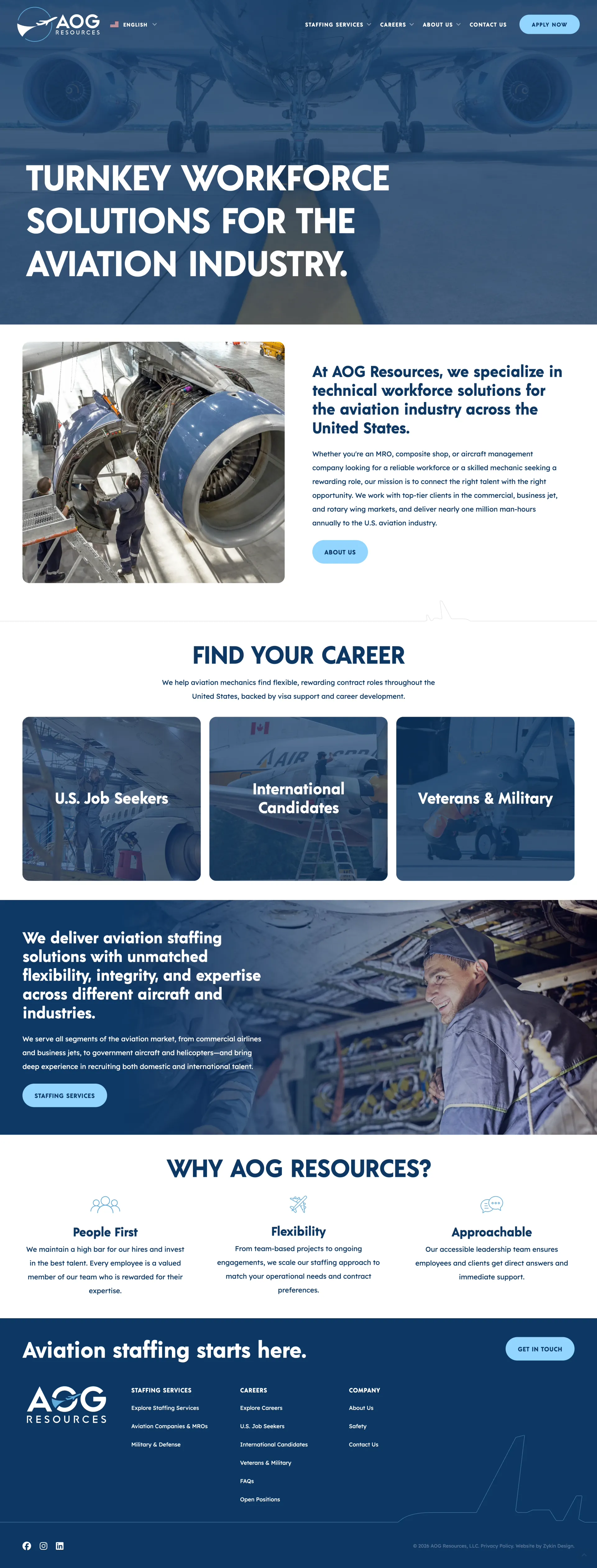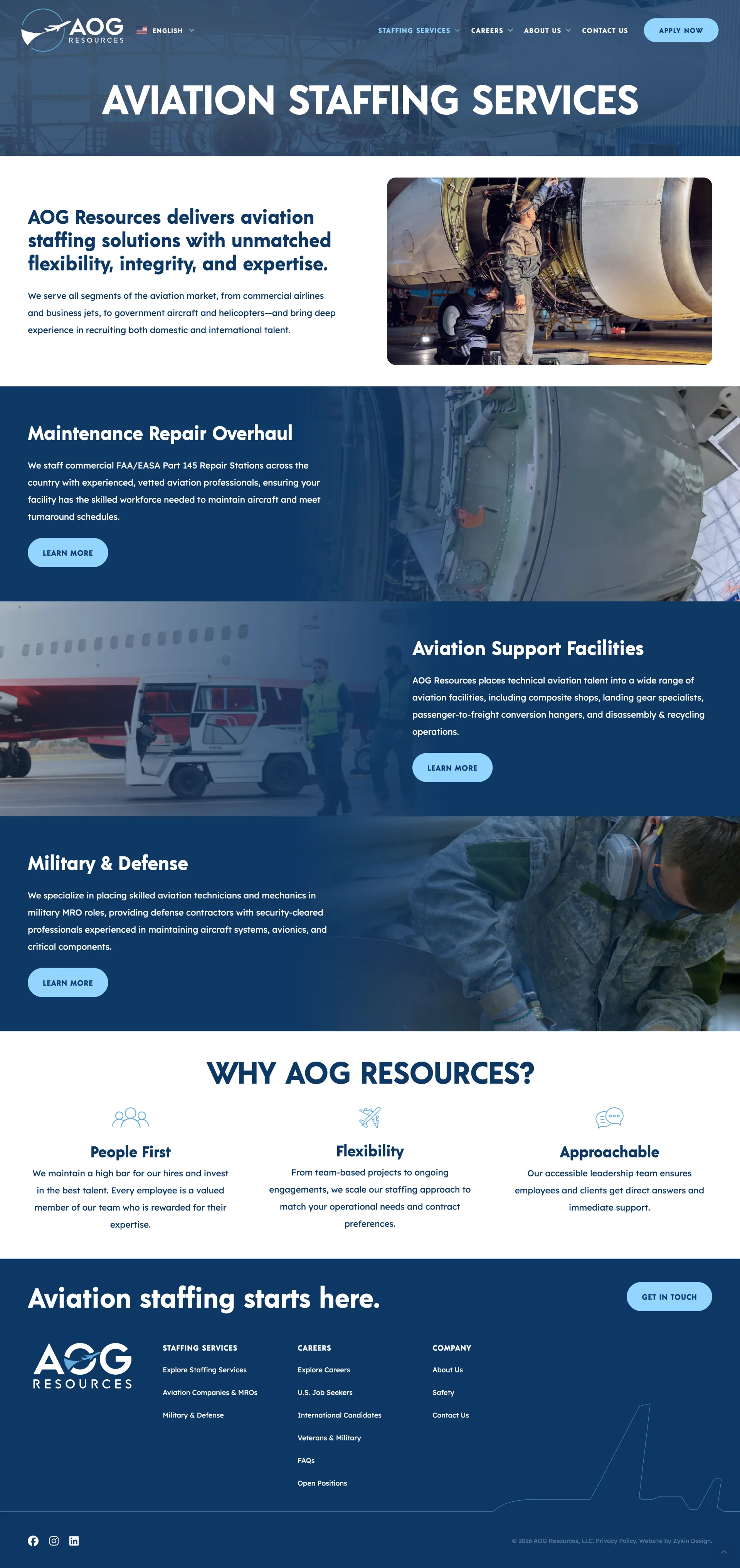 AOG partnered with us to create a modern, clean digital presence that speaks directly to multiple audiences: experienced job seekers (domestic and international), veterans, and MRO companies.