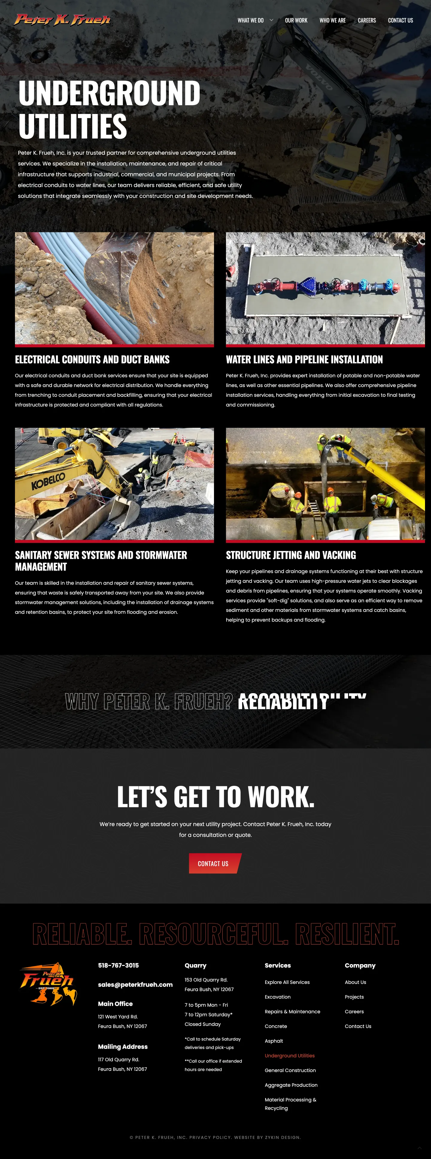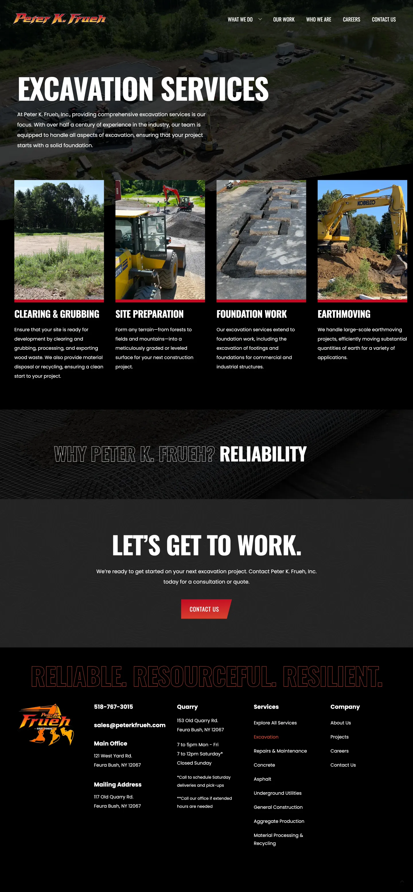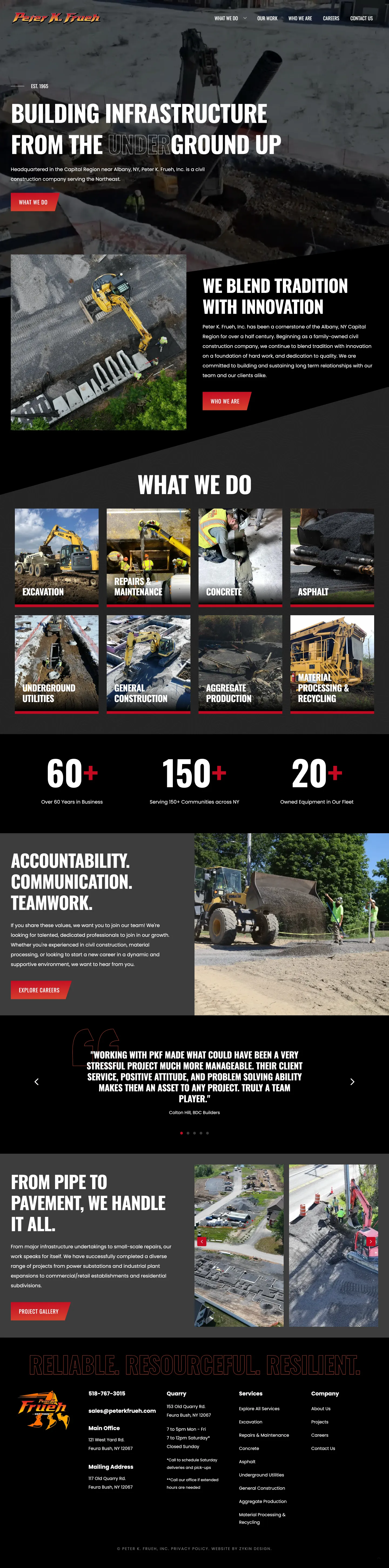 Peter K. Frueh has been a fixture of the Albany, NY Capital Region for over 60 years, providing excavation, underground utilities, concrete, asphalt, aggregate production, and other related services for decades.