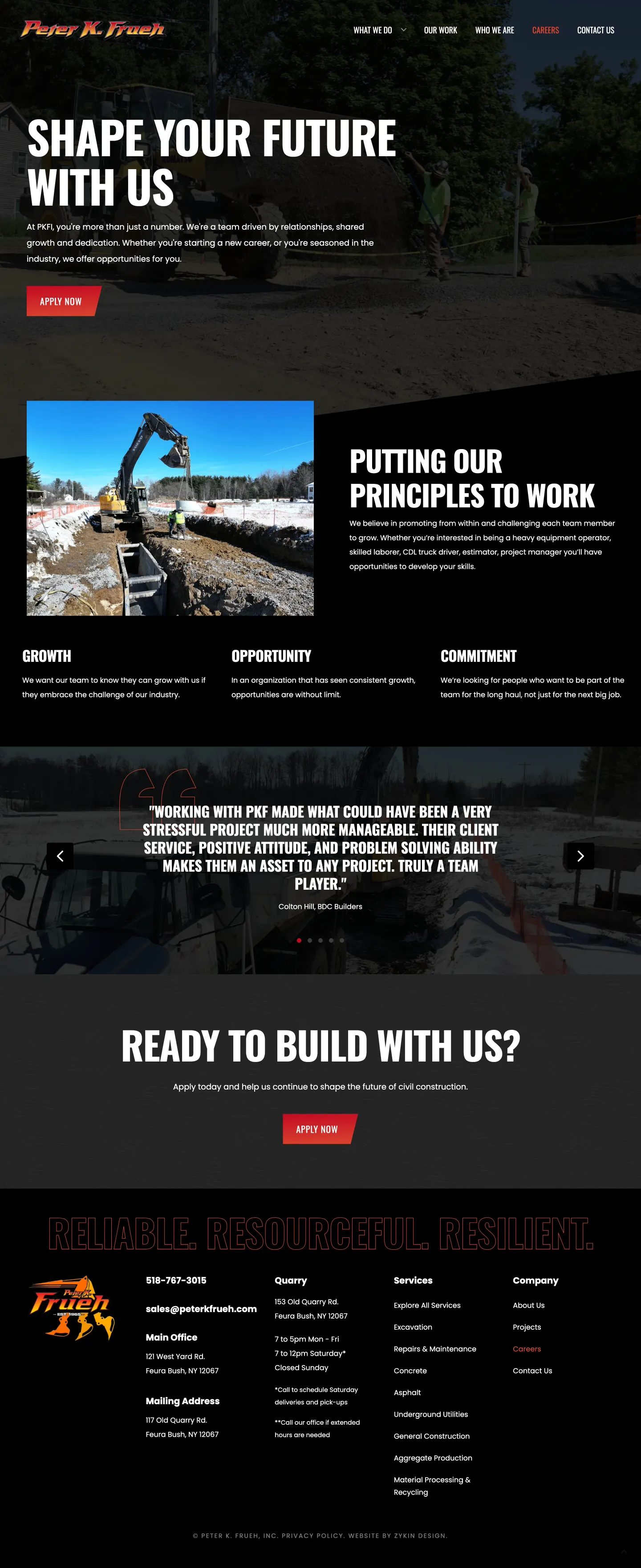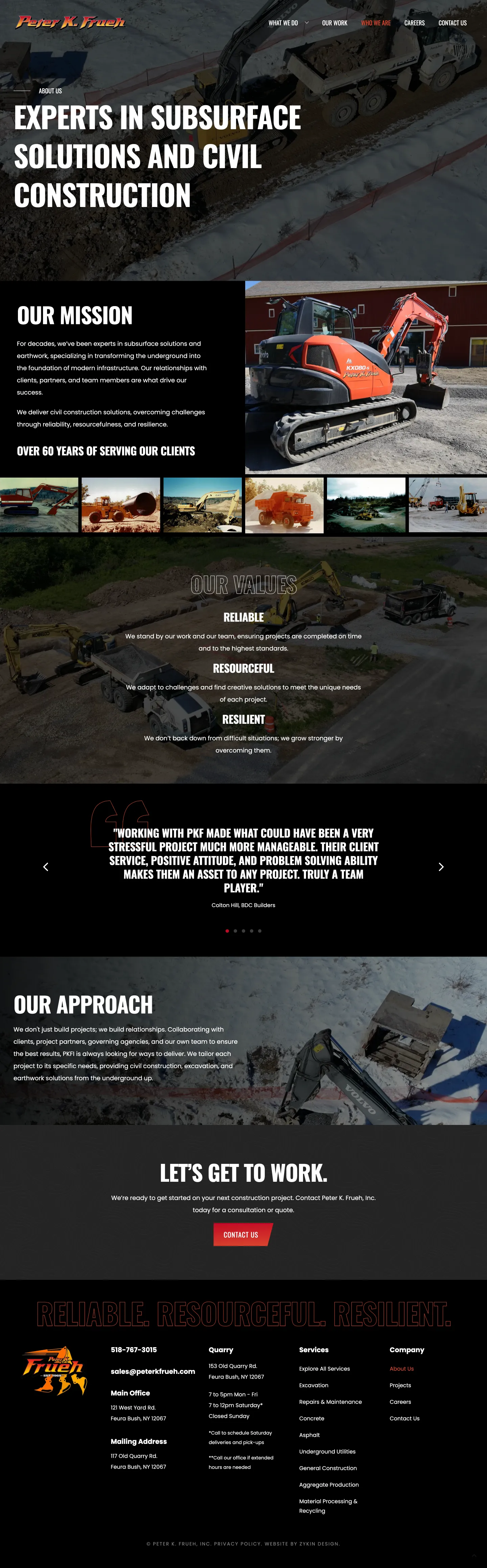 PKF partnered with us to design and develop a new website that reinforces their strong reputation as a leading heavy civil contractor, showcases their breadth of service offerings, and provides an overview of their aggregate products. The new site needed to validate the company’s professionalism and breadth of work while clearly conveying its culture and values.