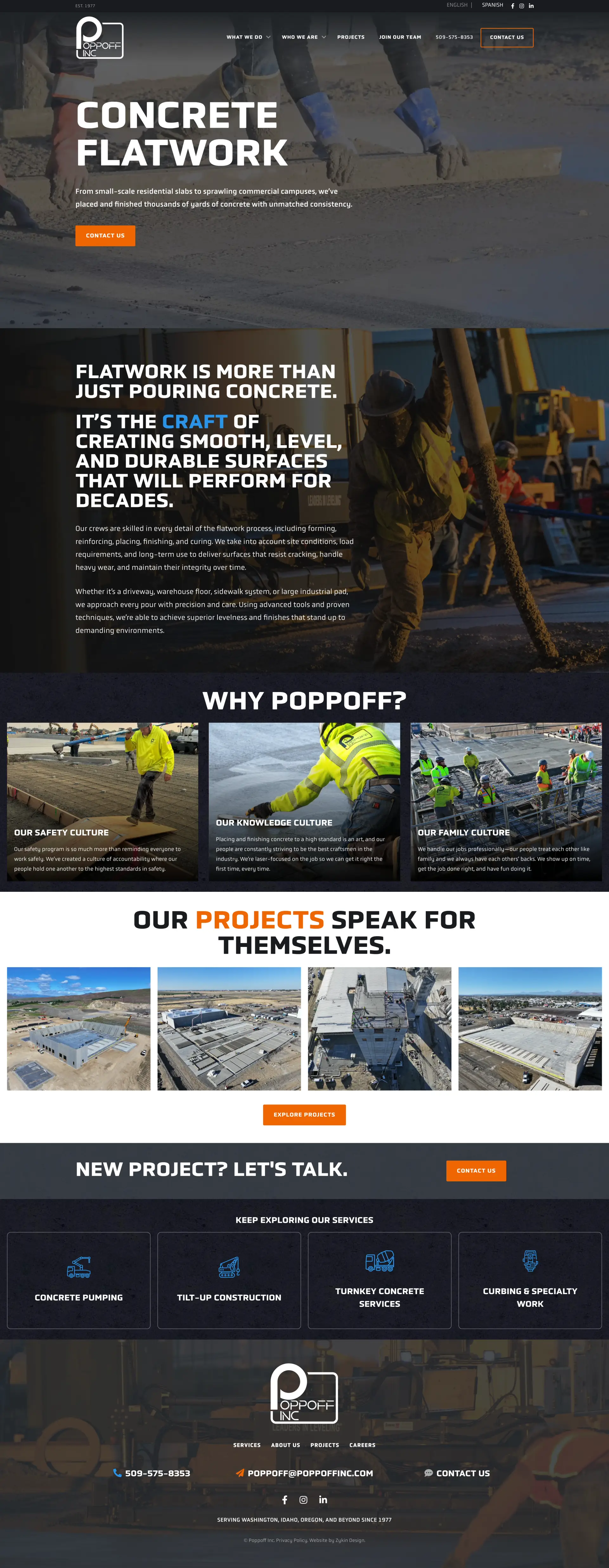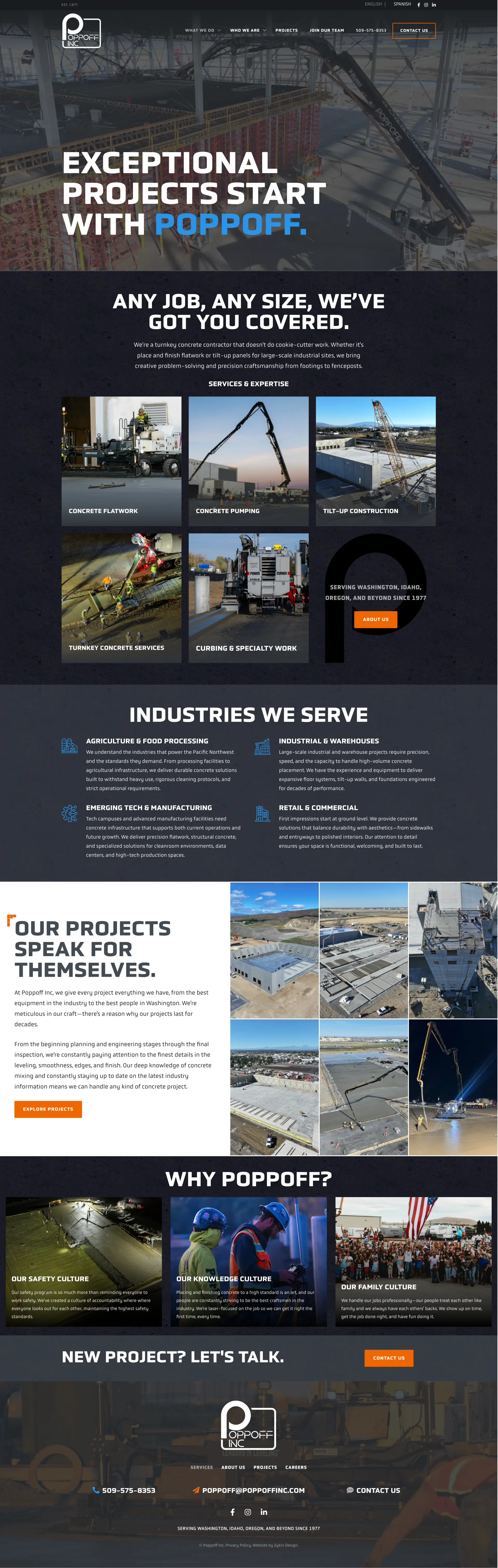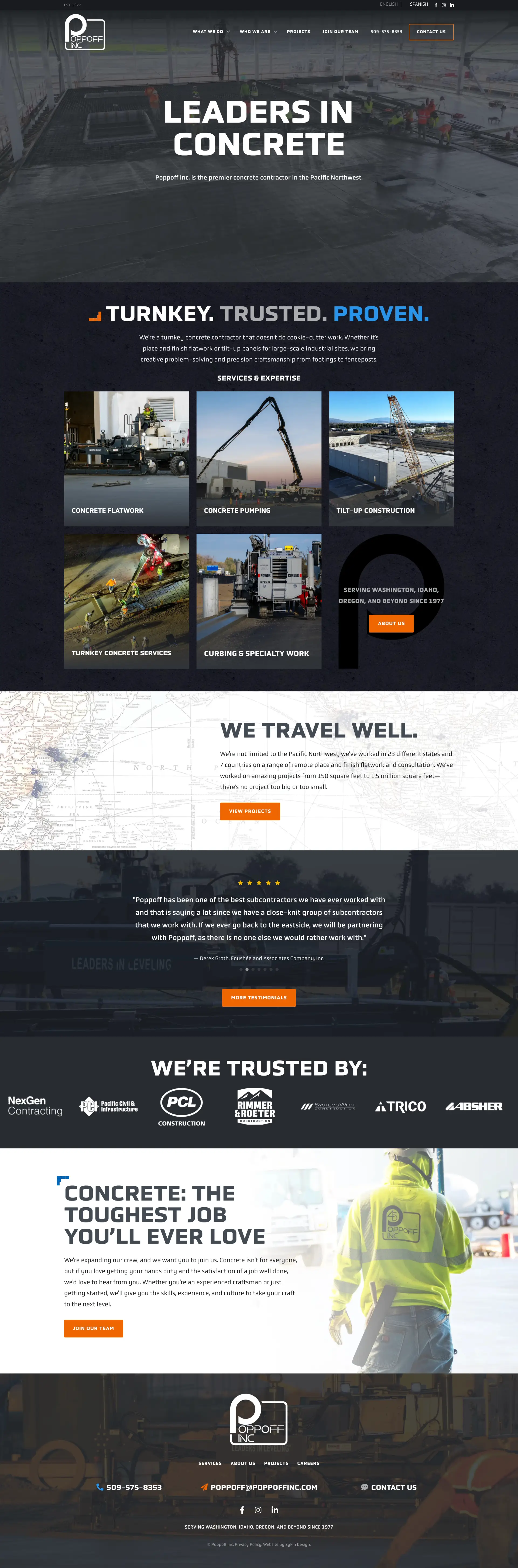 Poppoff Inc. is a full-service commercial concrete contractor operating across multiple states in the Pacific Northwest, handling flatwork, curbs, foundations, and everything in between. They're not a small operation, and their work speaks for itself on any job site. The problem was that their website wasn't doing the same anymore.