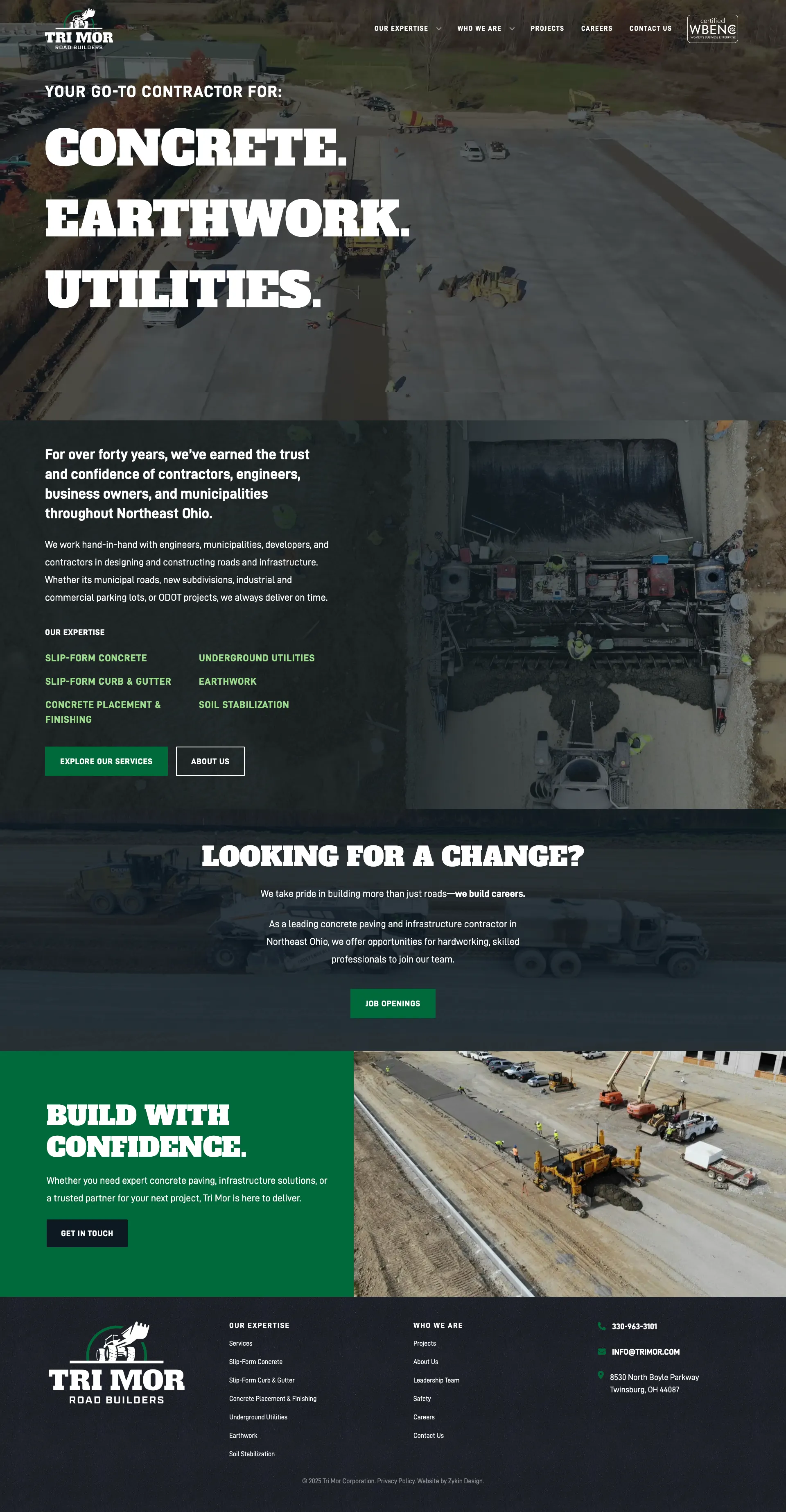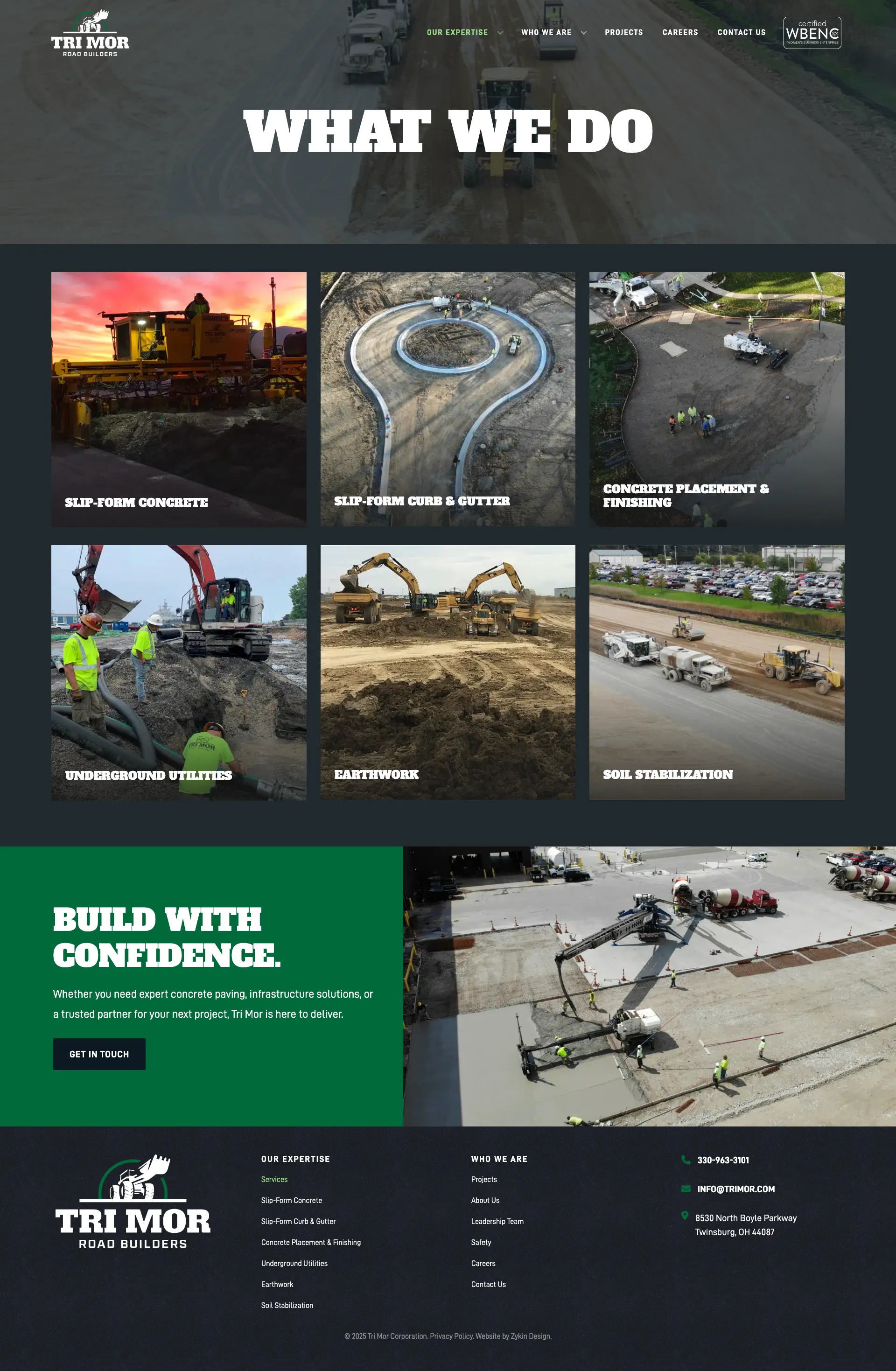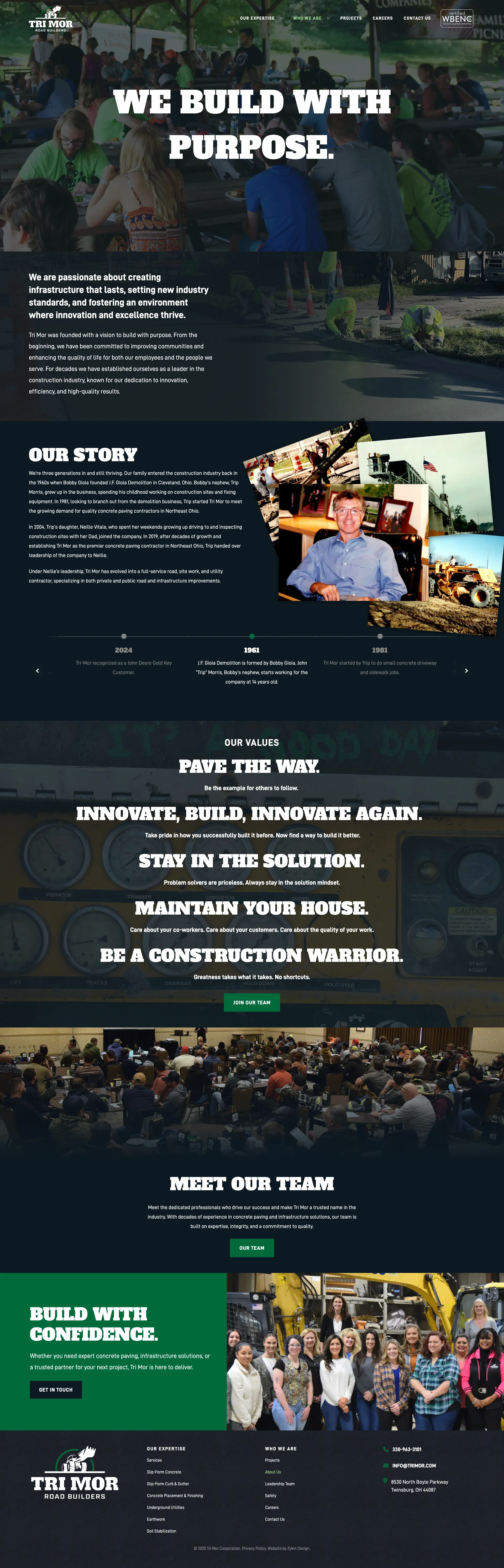 Through a combination of a strategic design system, compelling written content, and strong imagery, the new website reinforces Tri Mor’s reputation as a leading heavy civil construction contractor and an attractive employer in Northeast Ohio.
