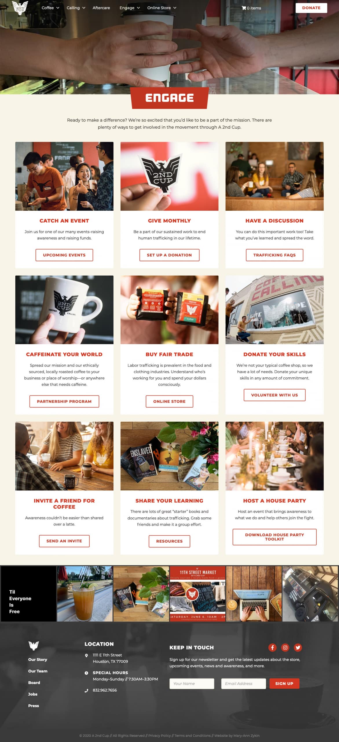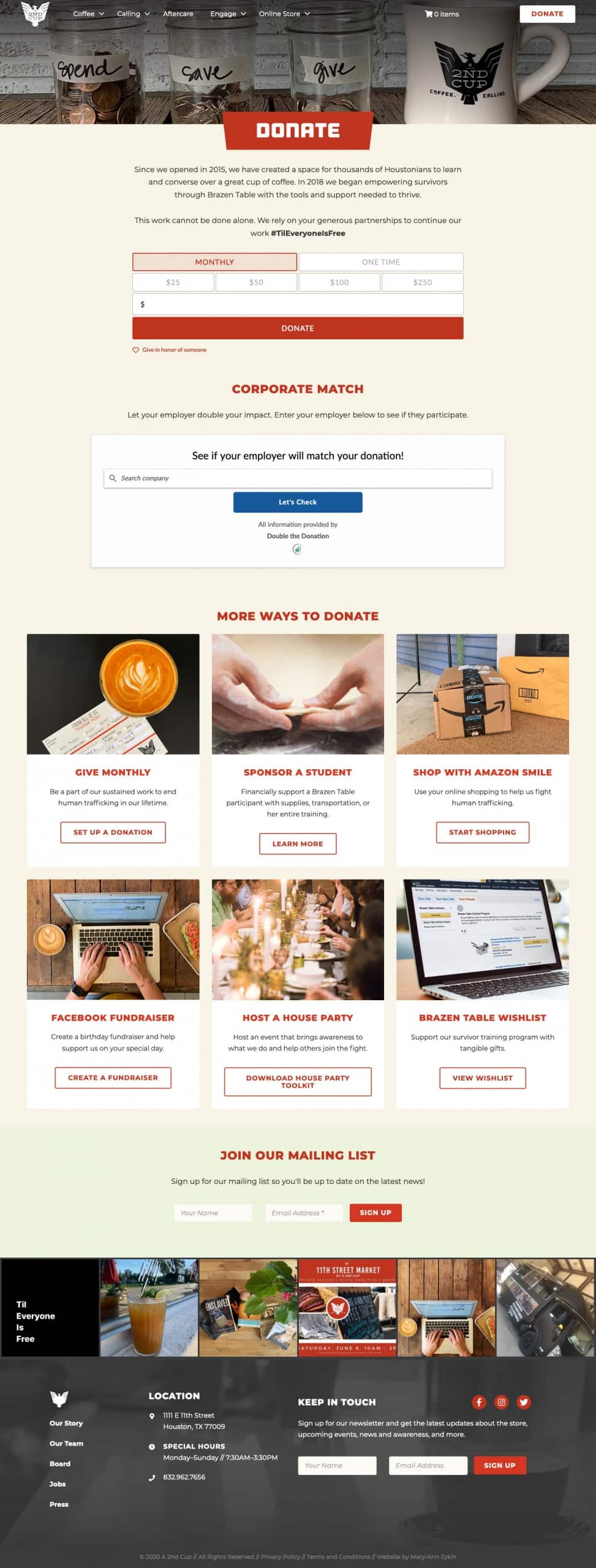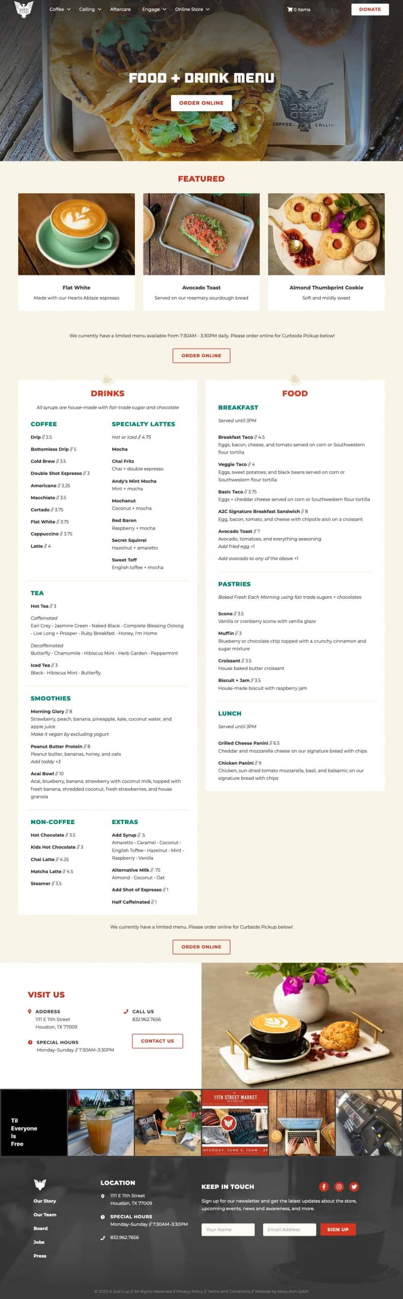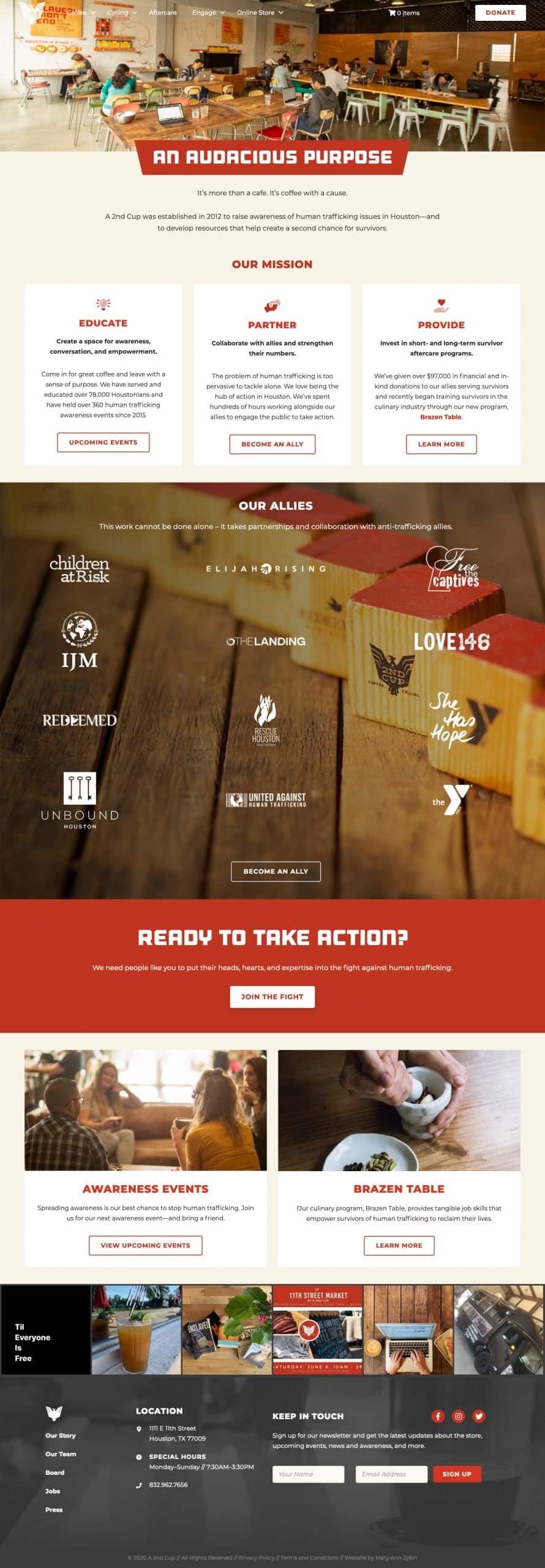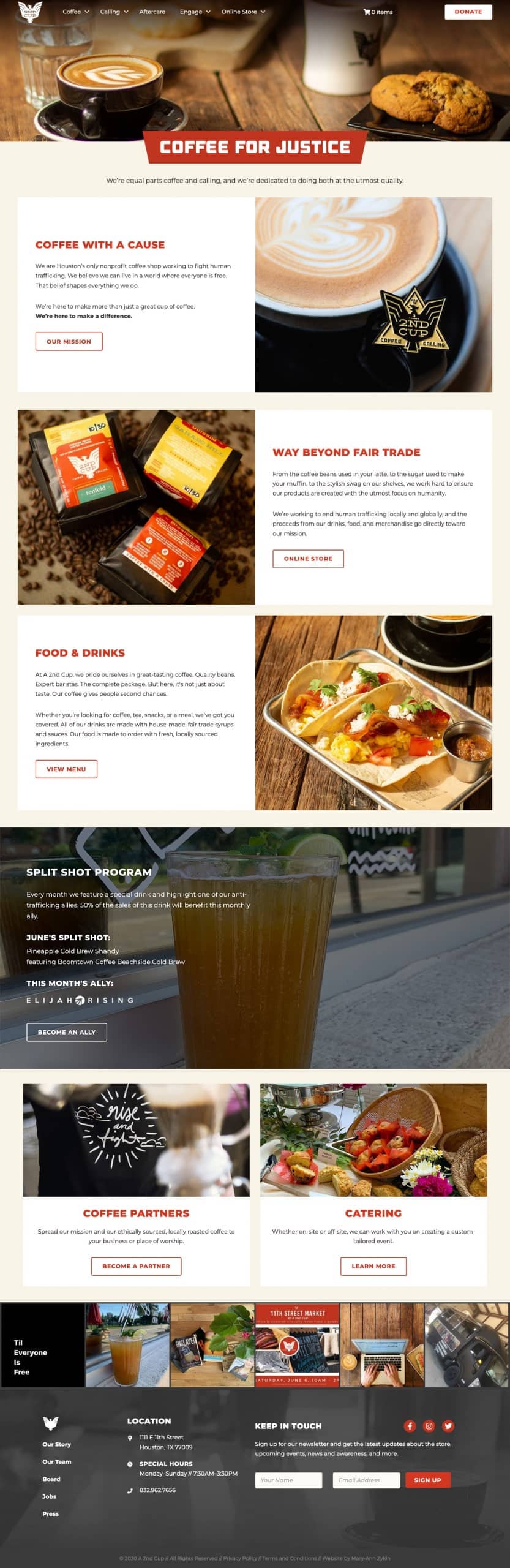 Previously, the organization had a minimal web presence but they understood the need to have a website that not only showcases who they are, but aids them as a business tool. A pair of volunteers had slowly built up a solid foundation, but A 2nd Cup sought a developer to help carry out the remainder of the website development by implementing new features. I took a look at the existing website and content and created a new website structure that better aided the goals of the website. A 2nd Cup gave me a lot of freedom with the creative direction and layout of the site while sticking to their brand standards, so I designed an engaging, dynamic website utilizing reusable components.