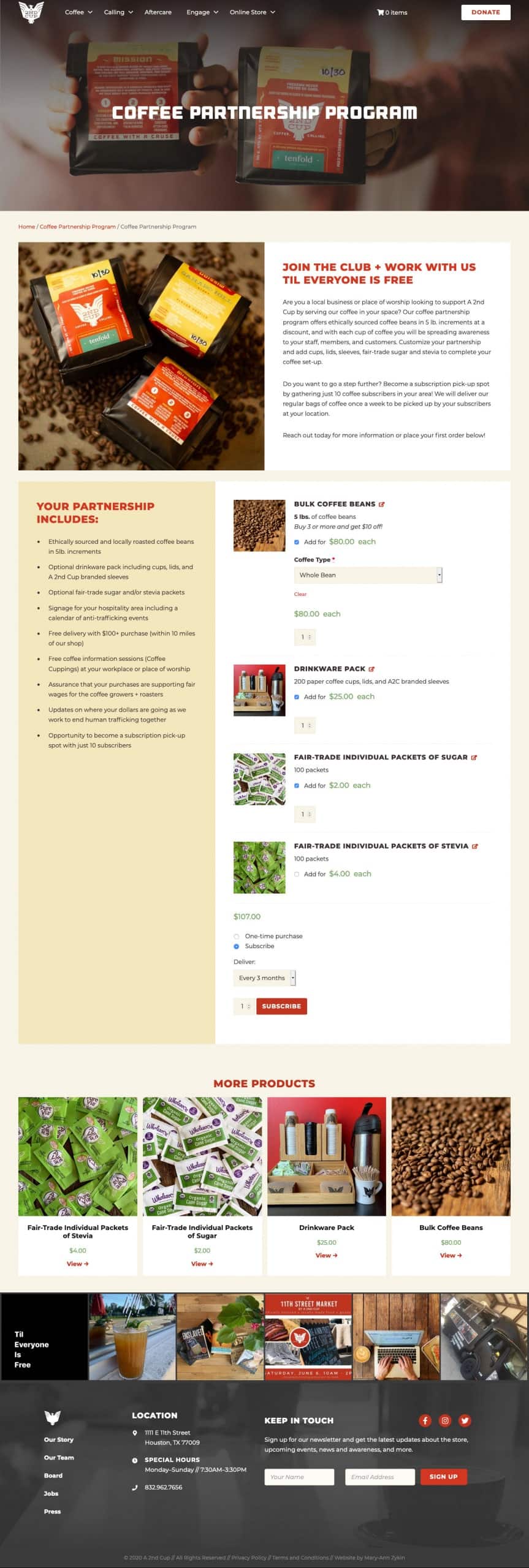 Not only does the website showcase their mission and physical storefront, but it also has an online shop that integrates directly with the in-store Point of Sale system. The e-commerce component was built with WooCommerce and features Square integration, custom product templates, subscription products, and a smooth checkout process.