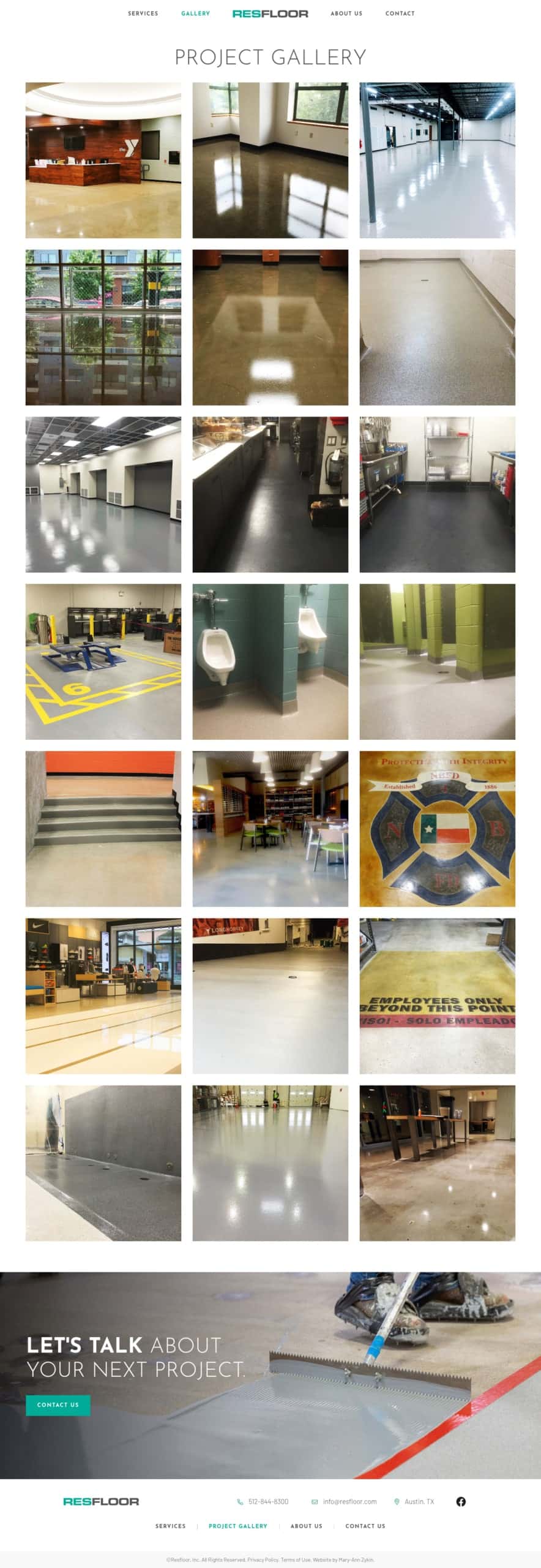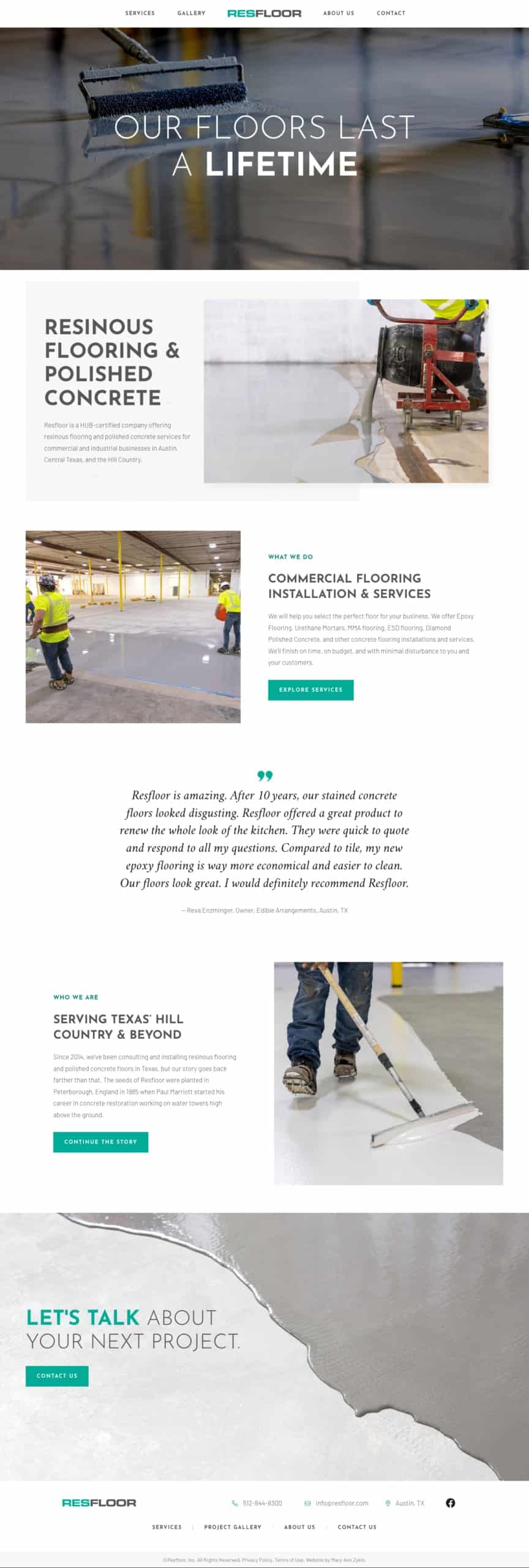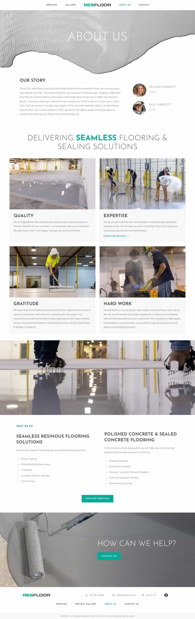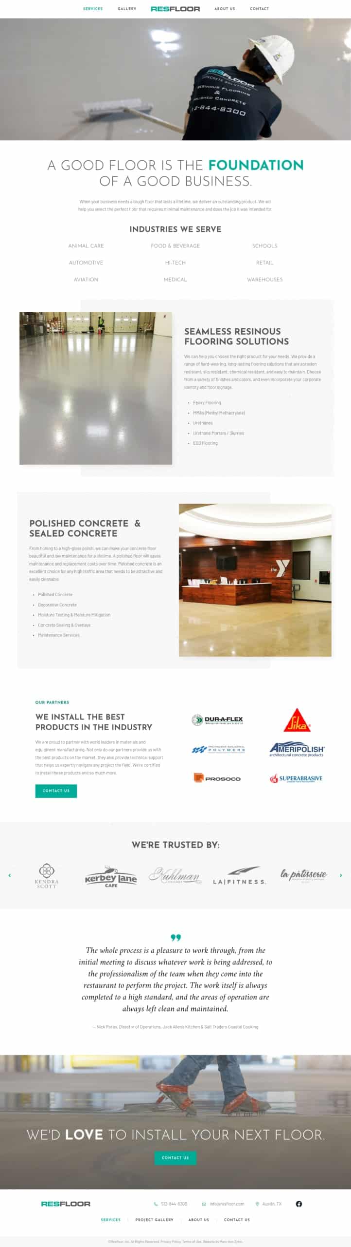 ResFloor is a provider of concrete flooring and installation products and services for commercial and industrial clients. They have a number of large clients and customers on a regional level, but their old website didn't reflect the quality or scope of work they provide. Several years after the launch of their original website, ResFloor was aiming to evolve the design to reflect their expertise and maturity.