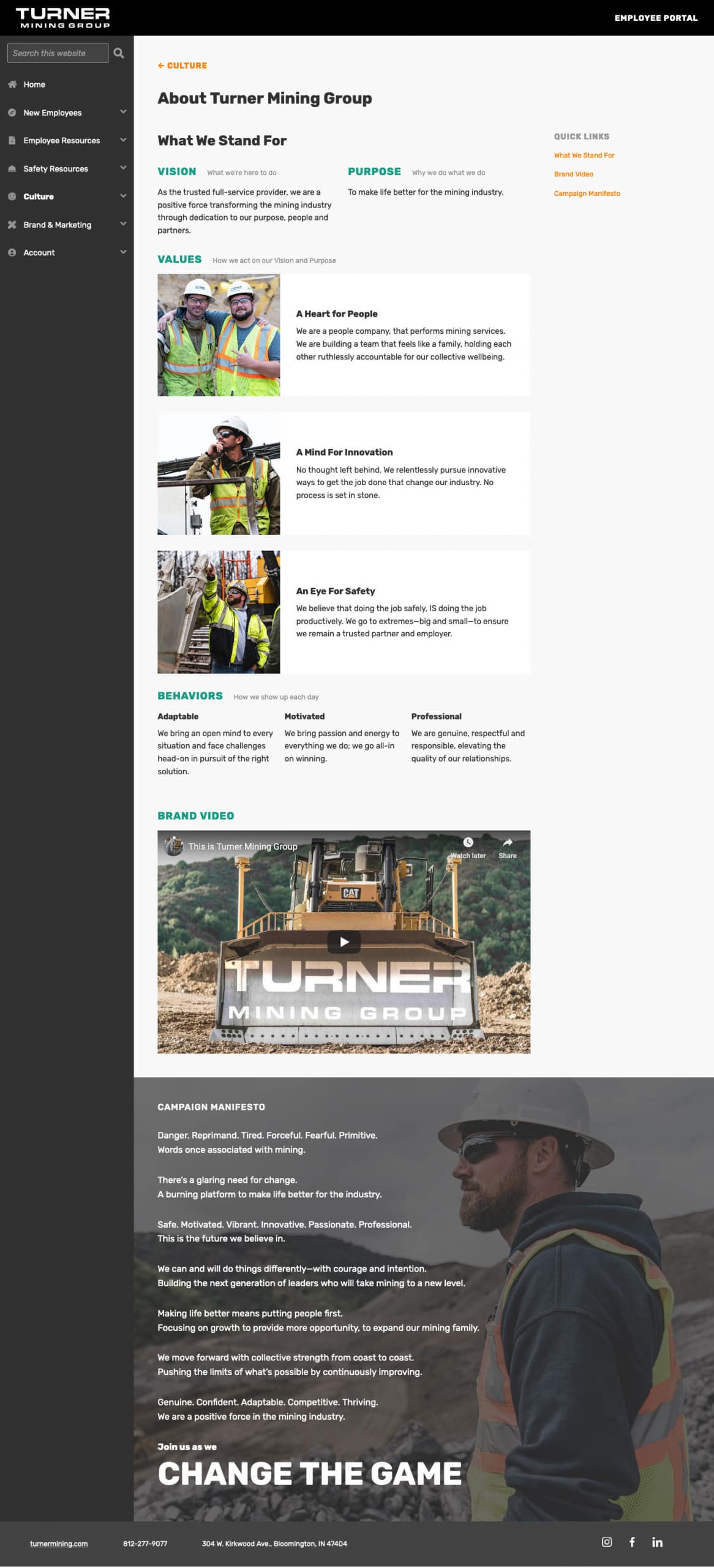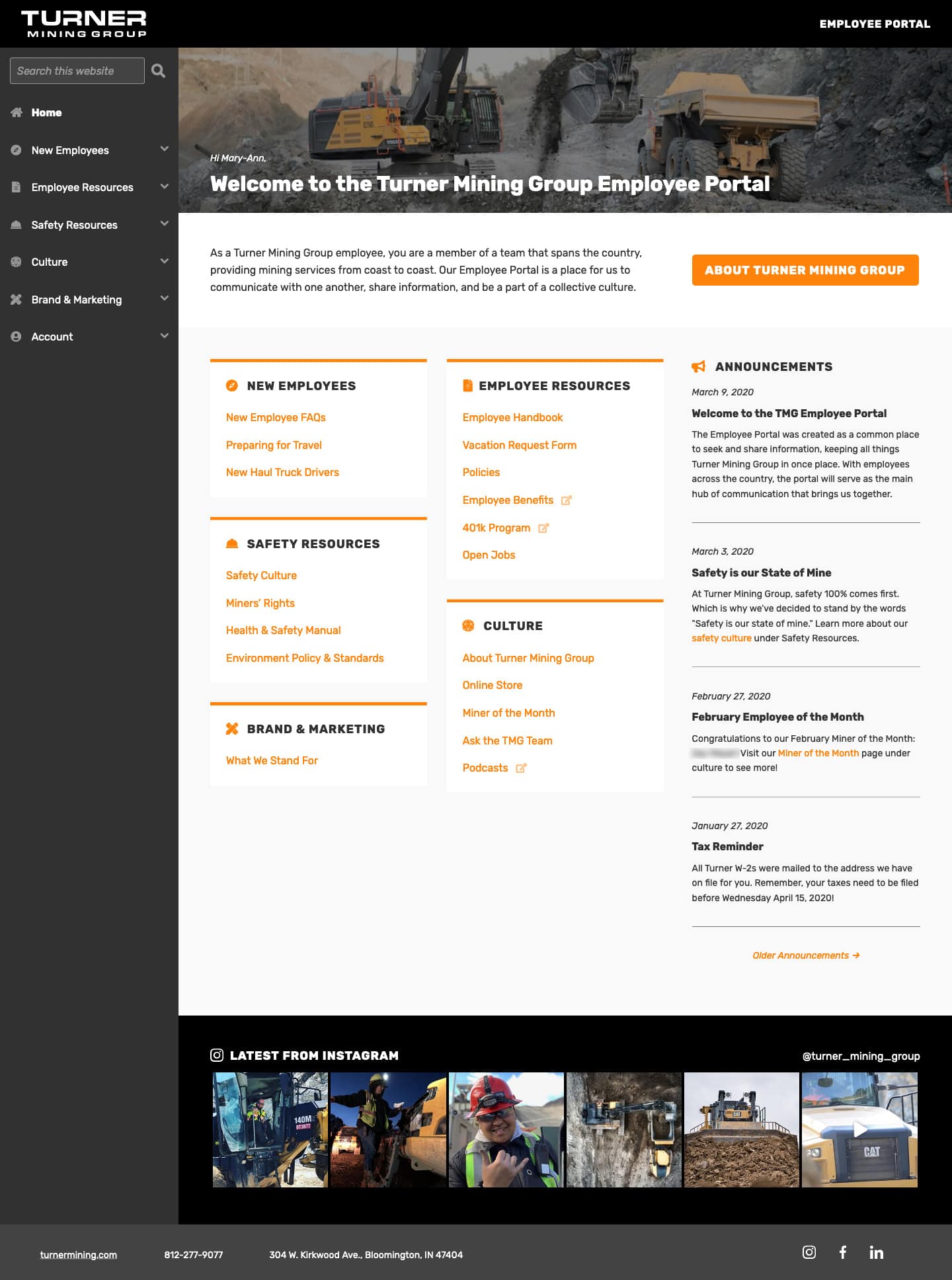 The Turner Mining Group Employee Portal is an intranet built for current and prospective employees across the organization.